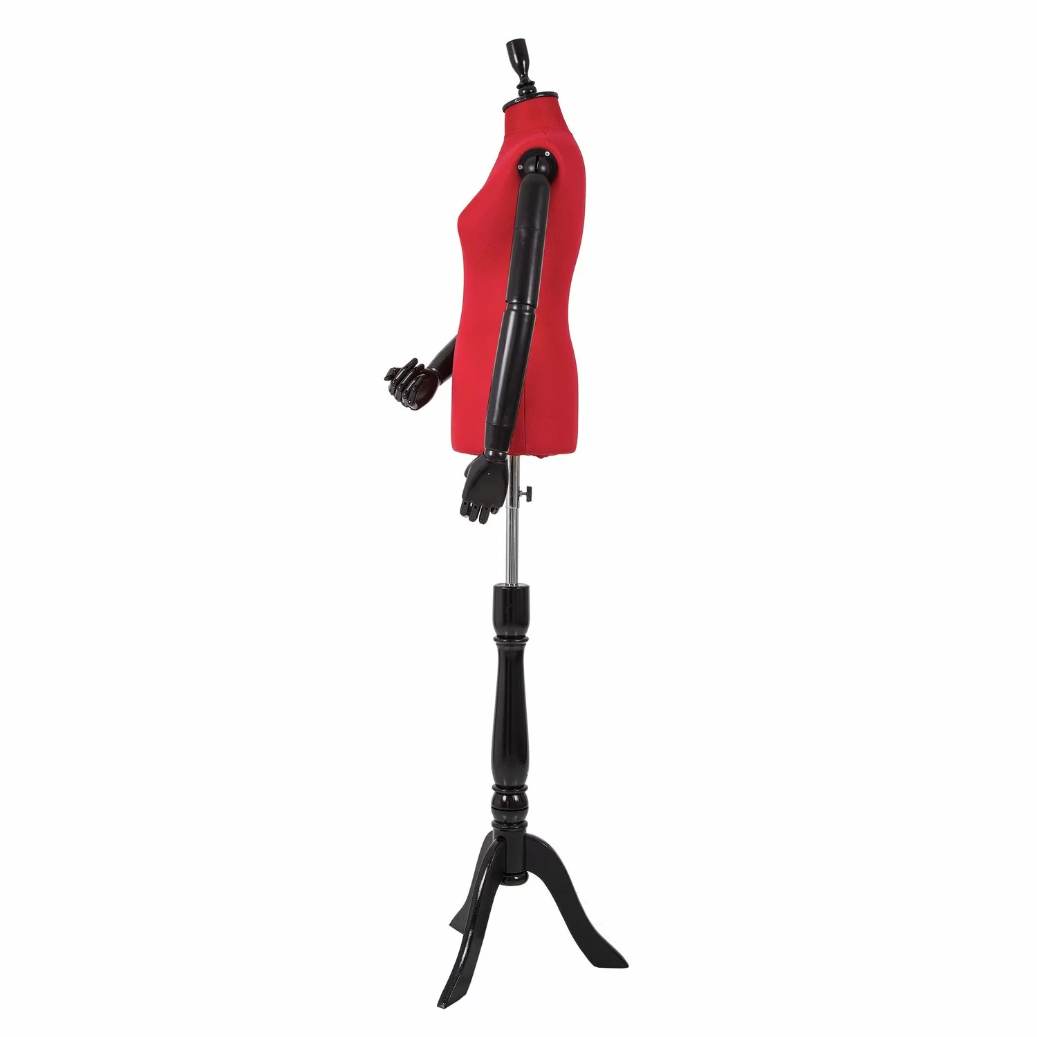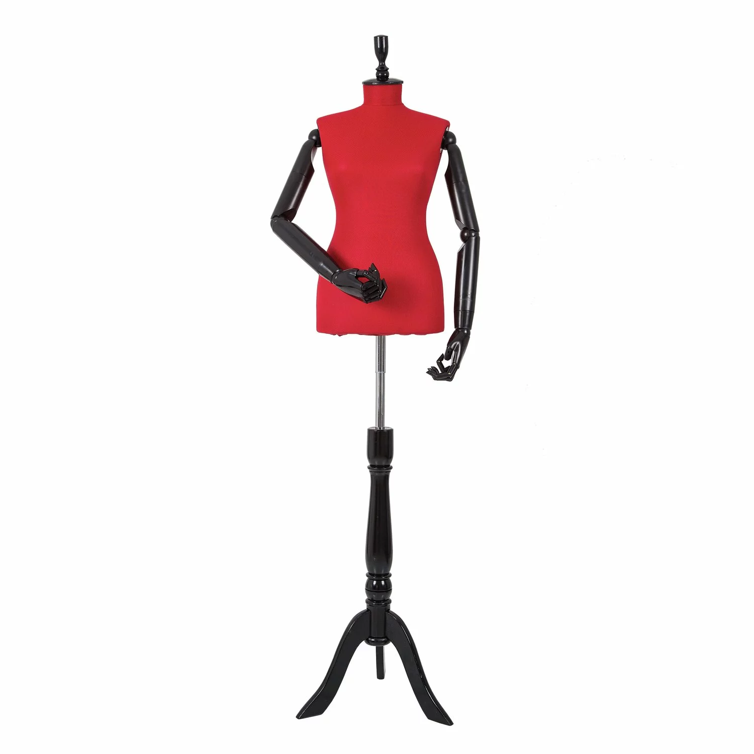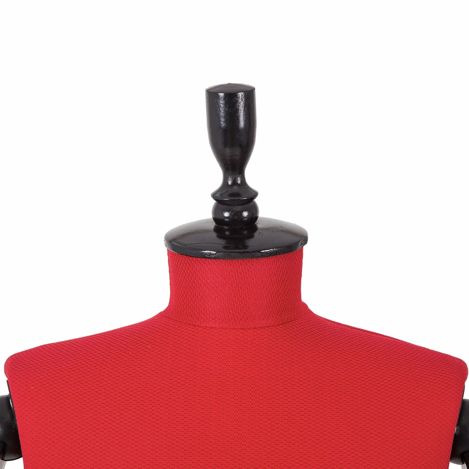Expuneti produsele de imbracaminte în lumina reflectoarelor cu Manechinul 987 cu brate ! Bustul cu picior confera un aspect elegant și clasic pentru a prezenta cu stil cele mai noi articole de îmbrăcăminte și accesorii. Busturile sunt realizate din material plastic turnat, acoperite cu material textil durabil de culoare rosie. Bustul are 70 cm inaltimea fara picior: Dimensiune bust (umeri 37 cm, bust 85 cm, talie 60 cm, solduri 90 cm) Bratele manechinului sunt realizate din plastic si sunt mobile. Piciorul are inaltime 100 cm Picior din lemn masiv vopsit negru. Bust marimea 36.