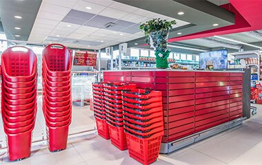 Asigurați clientilor o experiența convenabilă și ușoară cu coșurile și cărucioarele de cumpărături. Acestea sunt într-adevăr o necesitate dacă aveți un magazin în care clienții trebuie să transporte mai multe articole.
