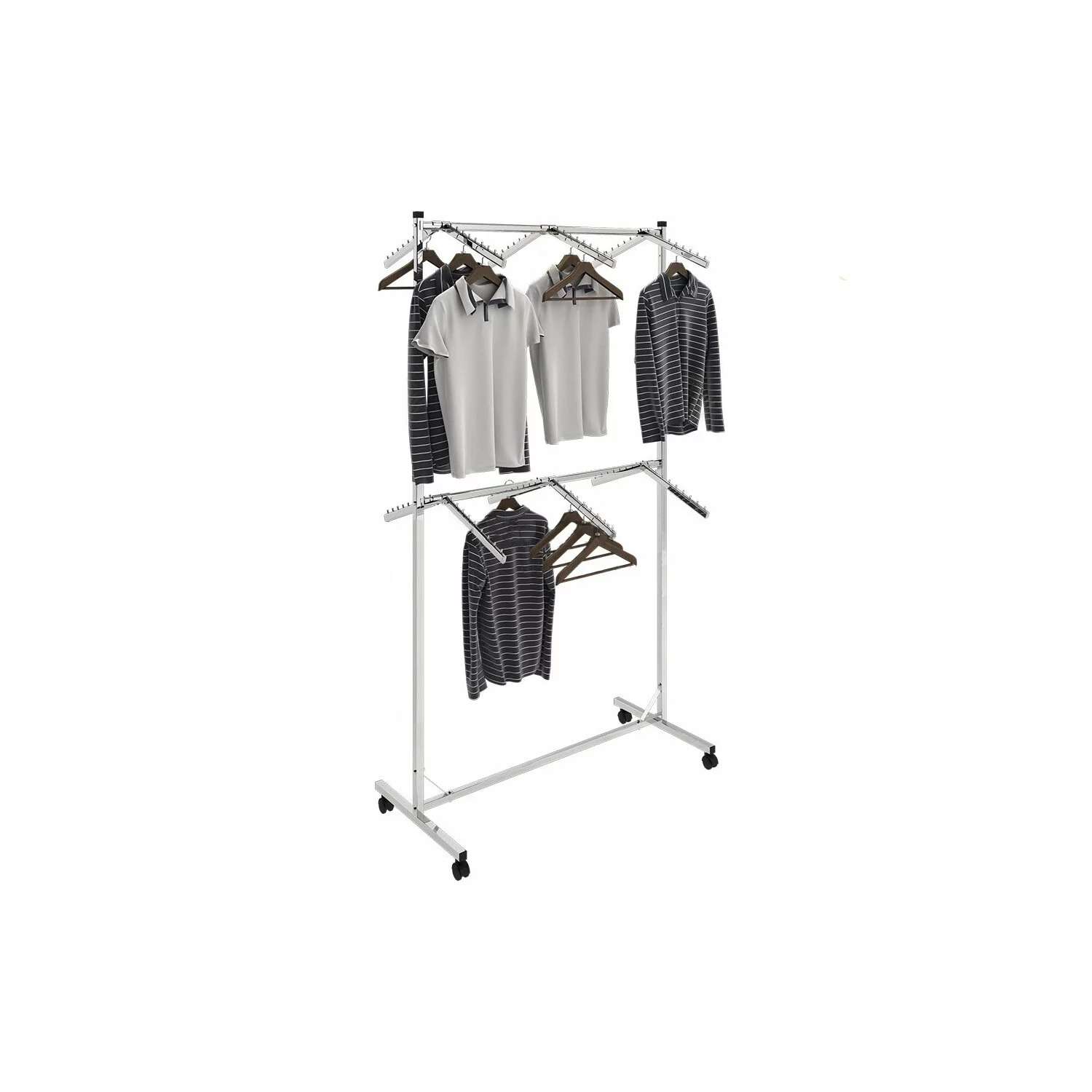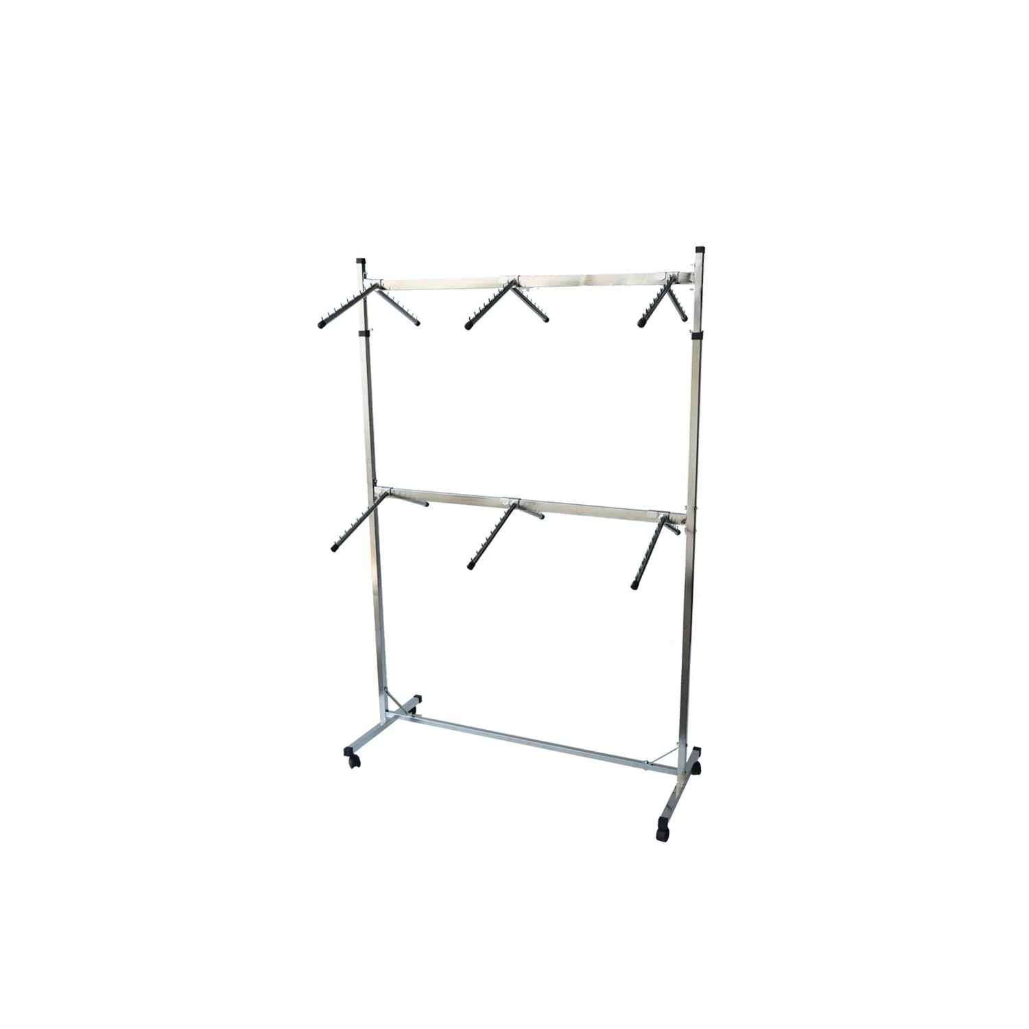Stender din metal cromat, cu doua bare si 12 brate pentru umerase , reglabil pe inaltime cu roti din plastic.