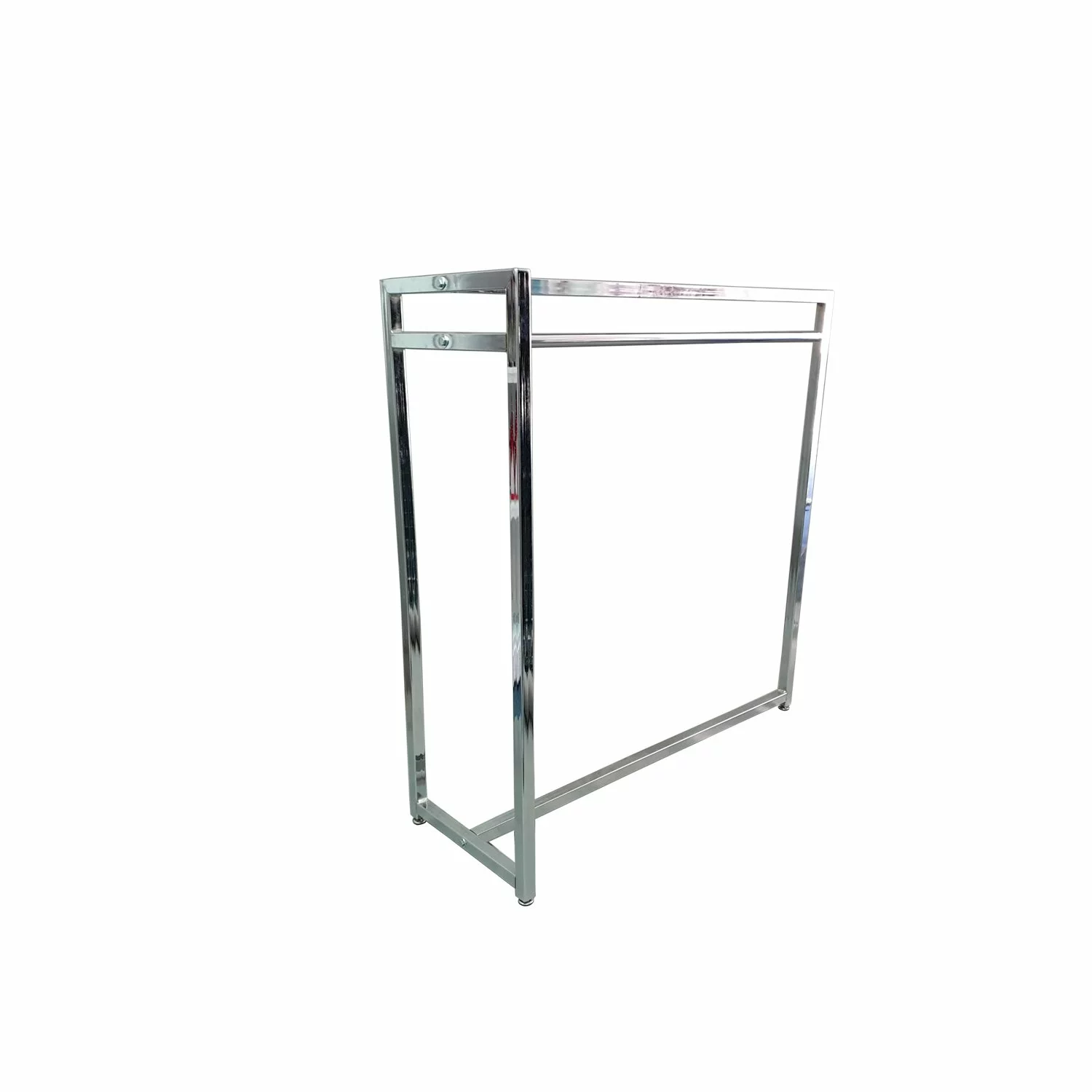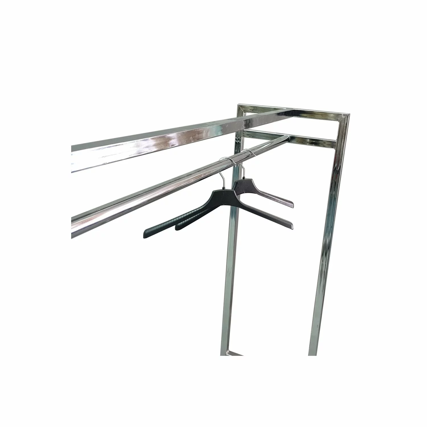 Stender din metal cromat pentru haine, realizat din profil rectangular.