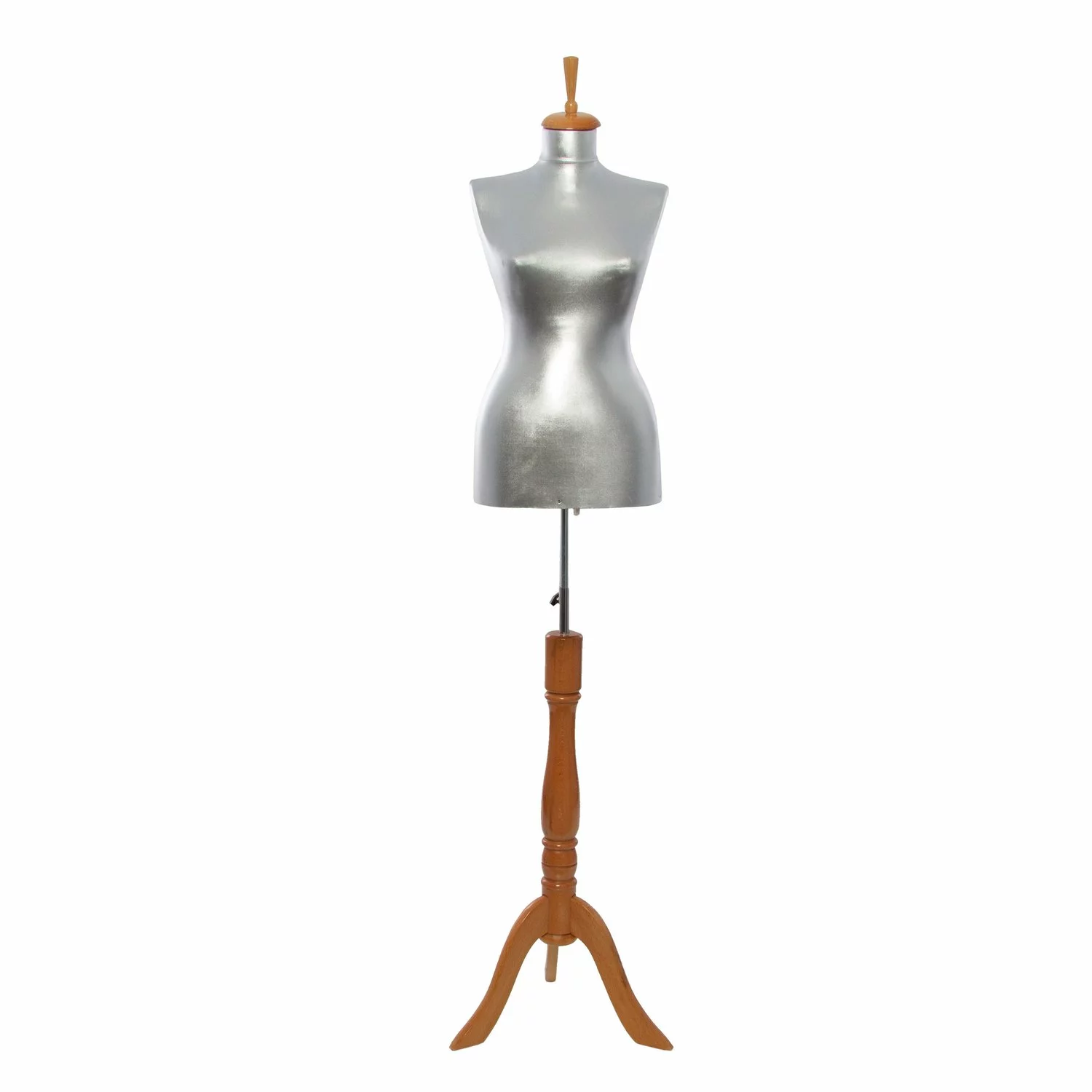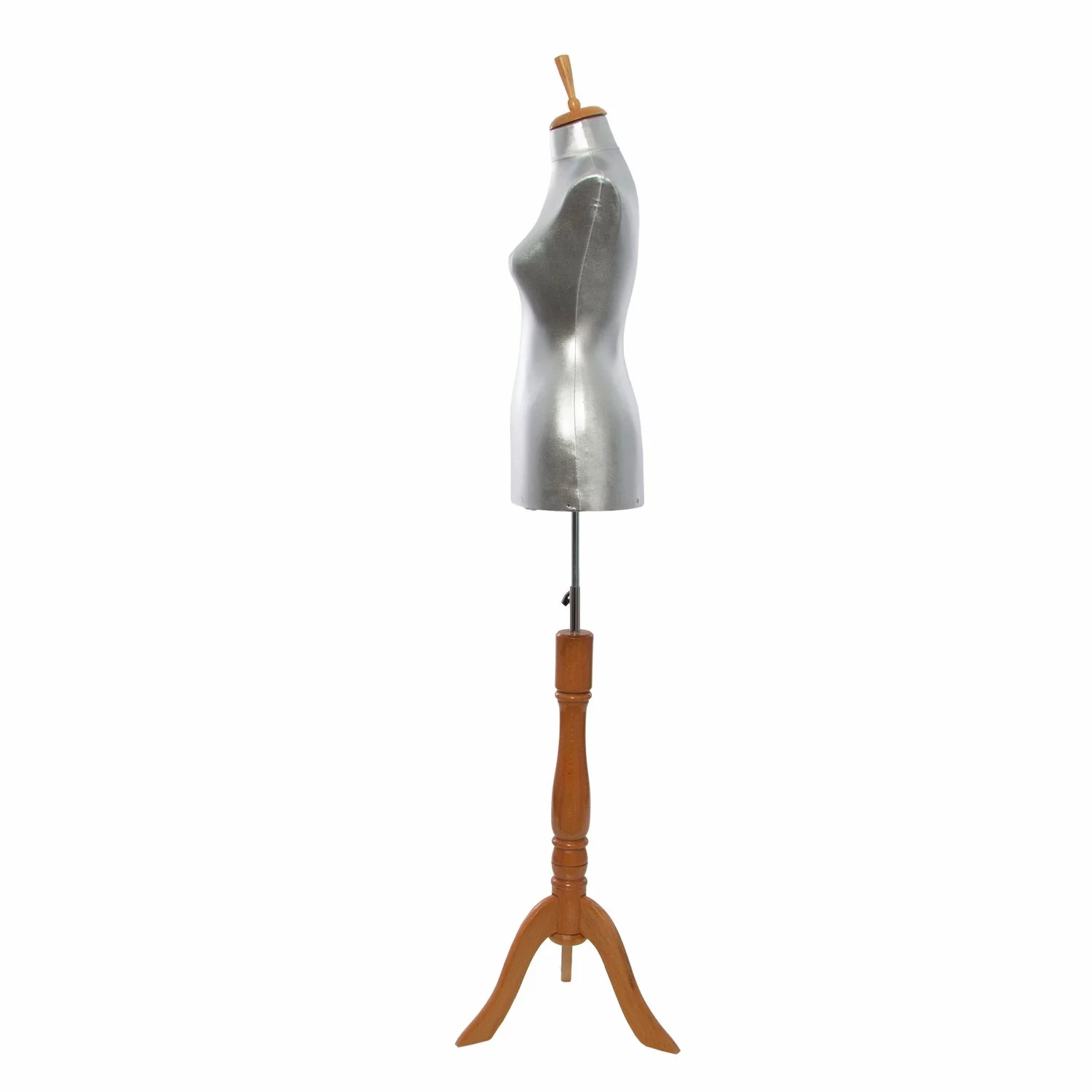 Expuneti produsele de imbracaminte în lumina reflectoarelor cu Bustul cu picior 987! Bustul cu picior confera un aspect elegant și clasic pentru a prezenta cu stil cele mai noi articole de îmbrăcăminte și accesorii. Busturile sunt realizate din material plastic turnat, acoperite cu material textil durabil de culoare argintie. Bustul are 70 cm inaltimea fara picior: Dimensiune (umeri 37 cm, bust 85 cm, talie 60 cm, solduri 90 cm)