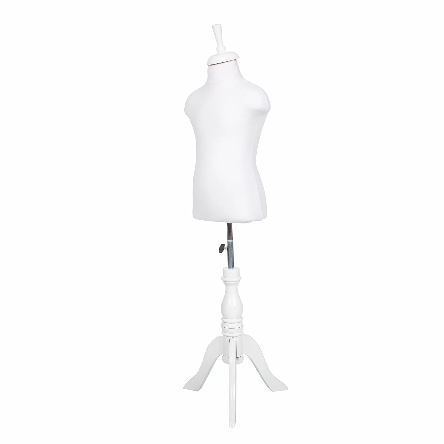 Manechin Croitorie Copil Cu Bust Alb, Picior Lemn Trepied Alb 4-6 Ani