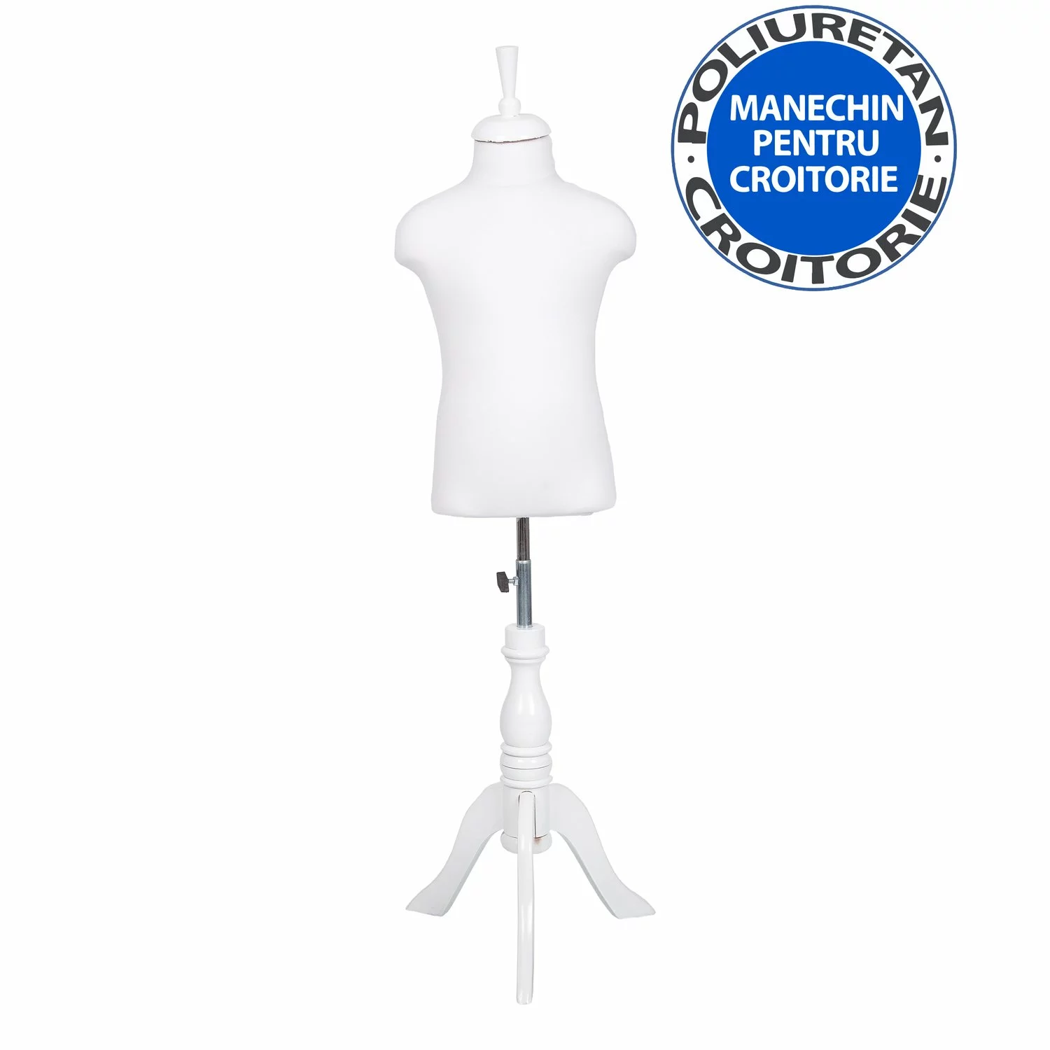 Expuneti produsele de imbracaminte în lumina reflectoarelor cu Bustul de copil 987 cu picior ! Bustul cu picior confera un aspect elegant și clasic pentru a prezenta cu stil cele mai noi articole de îmbrăcăminte și accesorii. Bustul este realizat din burete, acoperit cu material textil durabil de culoare alba. Bustul are 47 cm inaltimea fara picior: Dimensiune (umeri 34 cm, bust 56 cm, solduri 61 cm)