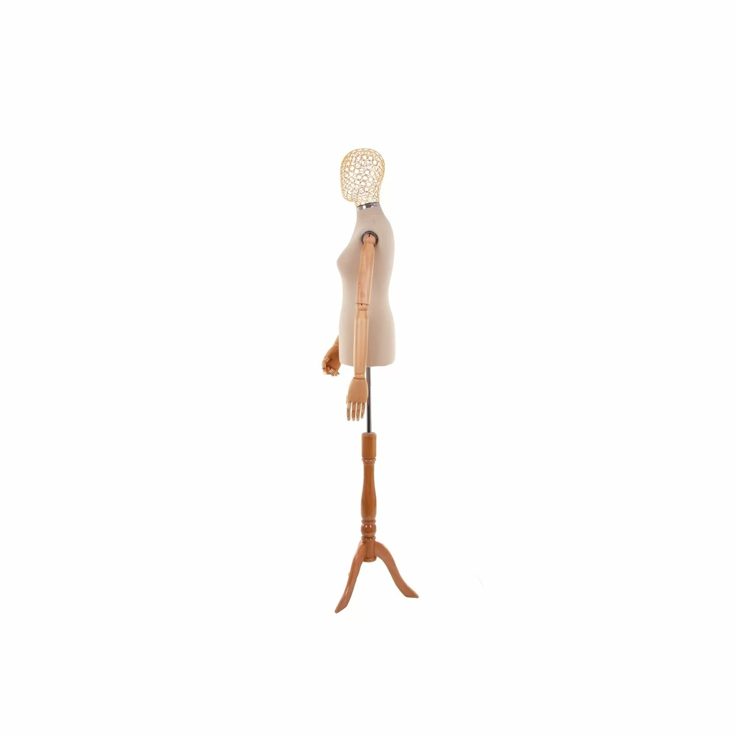 Bratele manechinului sunt realizate din lemn si sunt mobile.