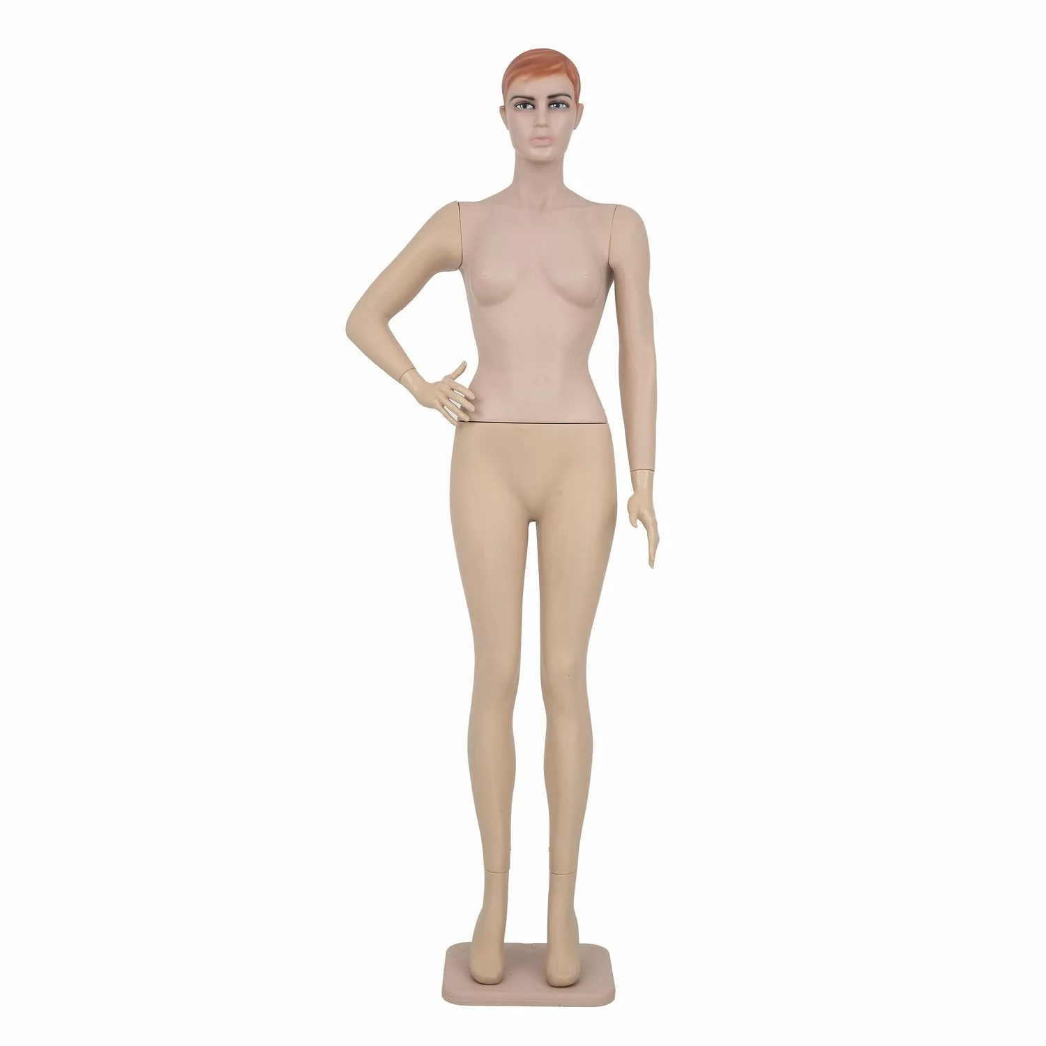 Manechin dama din plastic cu o mana in sold.