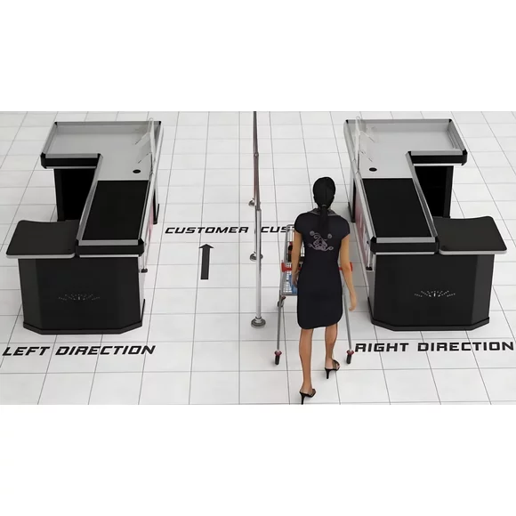 Design tip U – spațiu generos pentru casier și flux rapid pentru clienți