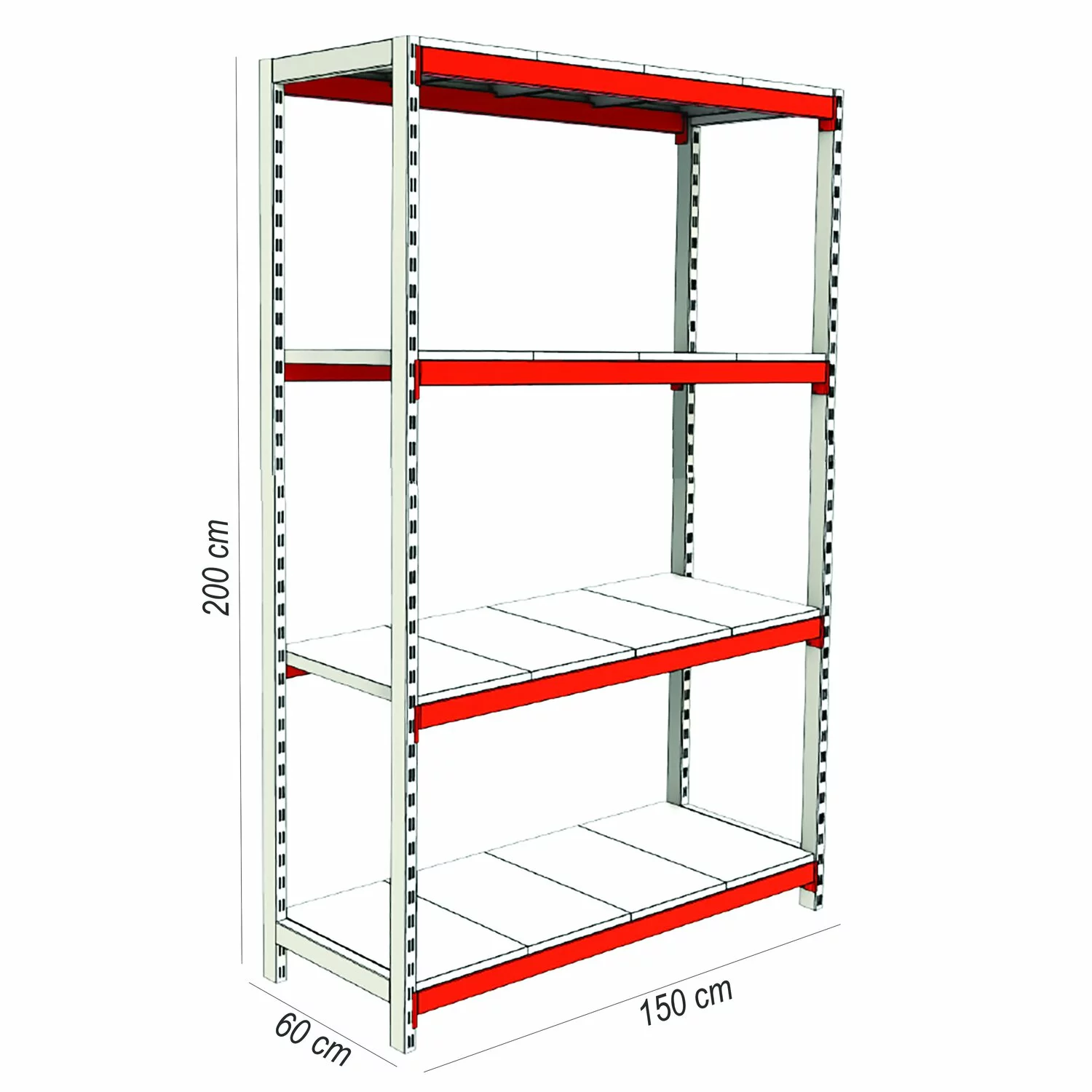 RAFT DEPOZITARE CU POLITE METALICE, H: 200 X L: 150 X l: 60 CM, 2 PICIOARE