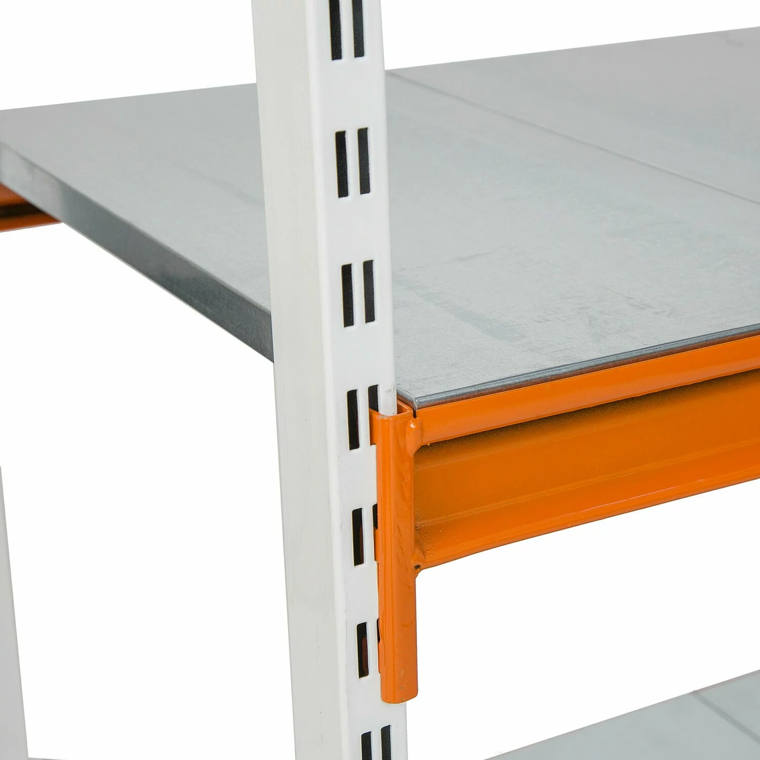 Raft depozitare cu polite metalice de 0,5 mm, greutate max. suportata 200 kg/nivel. Traversele metalice (profile orizontale) cu lungimea de 150 cm si cu grosimea de 1.5 mm se monteaza fara surub, prin clipsare. Sistemul acesta de prindere va permite sa reglati politele foarte usor pe inaltimea raftului.