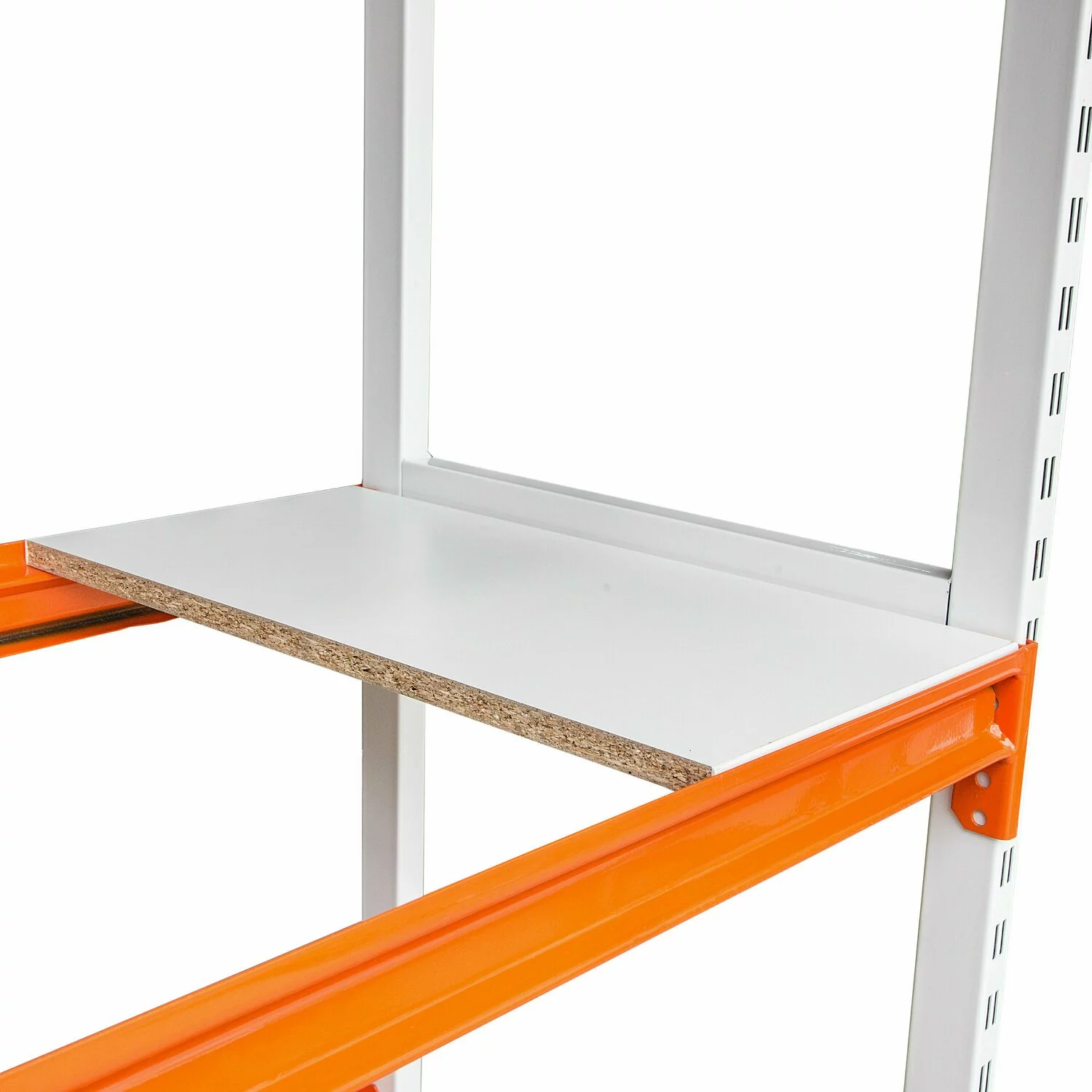 Raftul il puteti cumpara fara polite si puteti pune PAL sau OSB in loc de polite metalice.