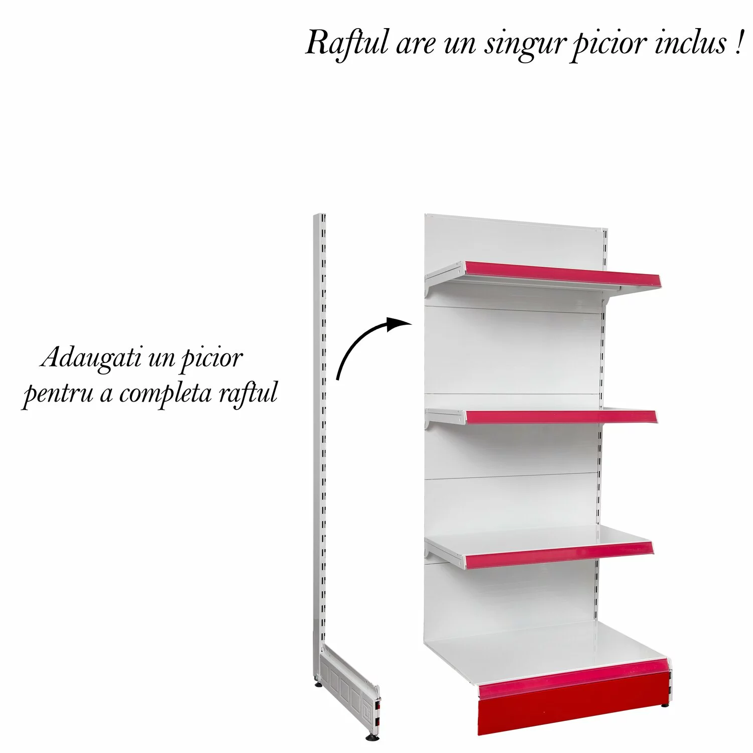 Pretul raftului se calculeaza cu un singur stalp vertical deoarece al doilea stalp vine de la urmatorul raft si se leaga intre ele. Acest lucru va scuteste de a cumpara cate doua profile pe raft. La final dupa ce aveti mai multe module adaugati un picior.