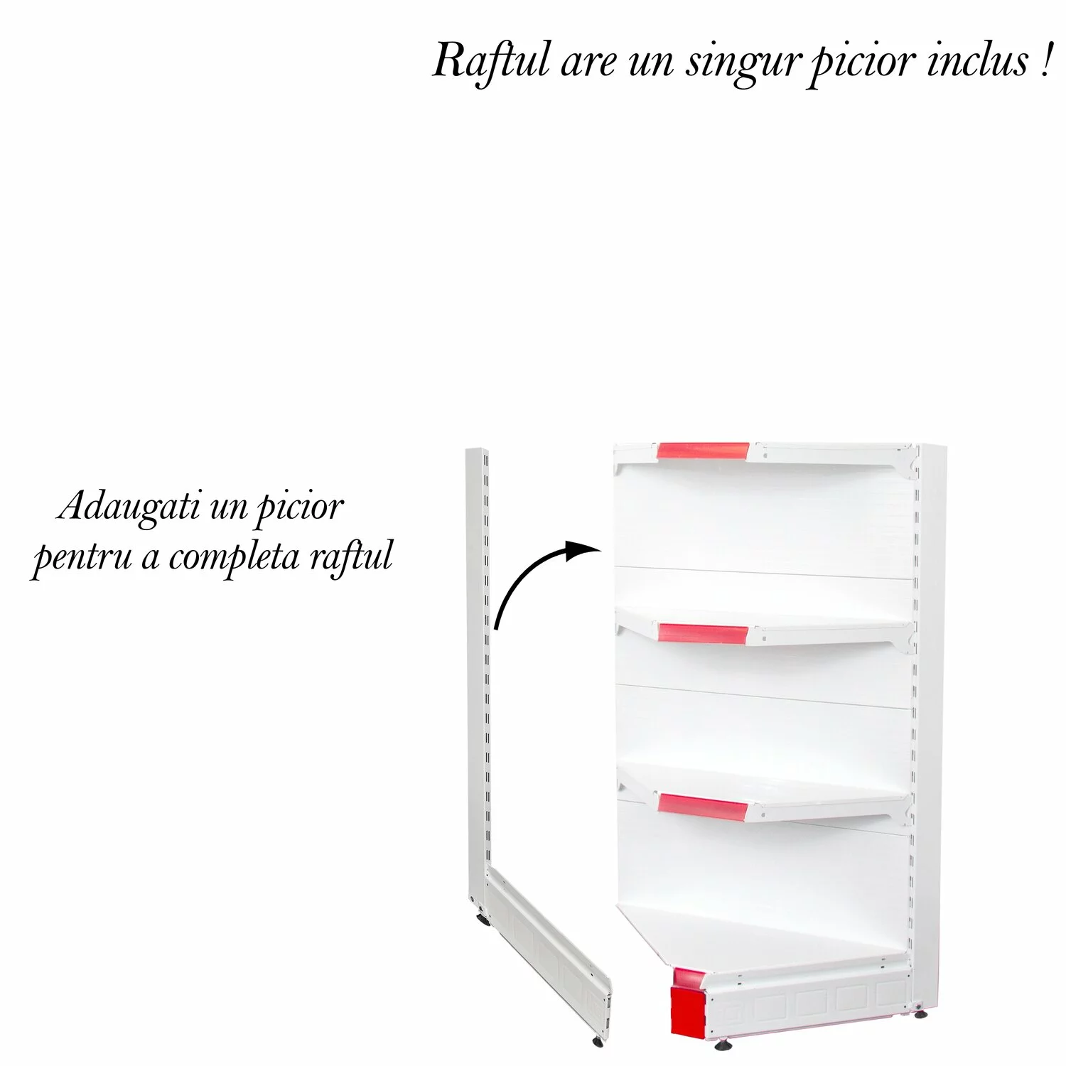 Pretul raftului se calculeaza cu un singur stalp vertical deoarece al doilea stalp vine de la urmatorul raft si se leaga intre ele. Acest lucru va scuteste de a cumpara cate doua profile pe raft. La final dupa ce aveti mai multe module adaugati un picior