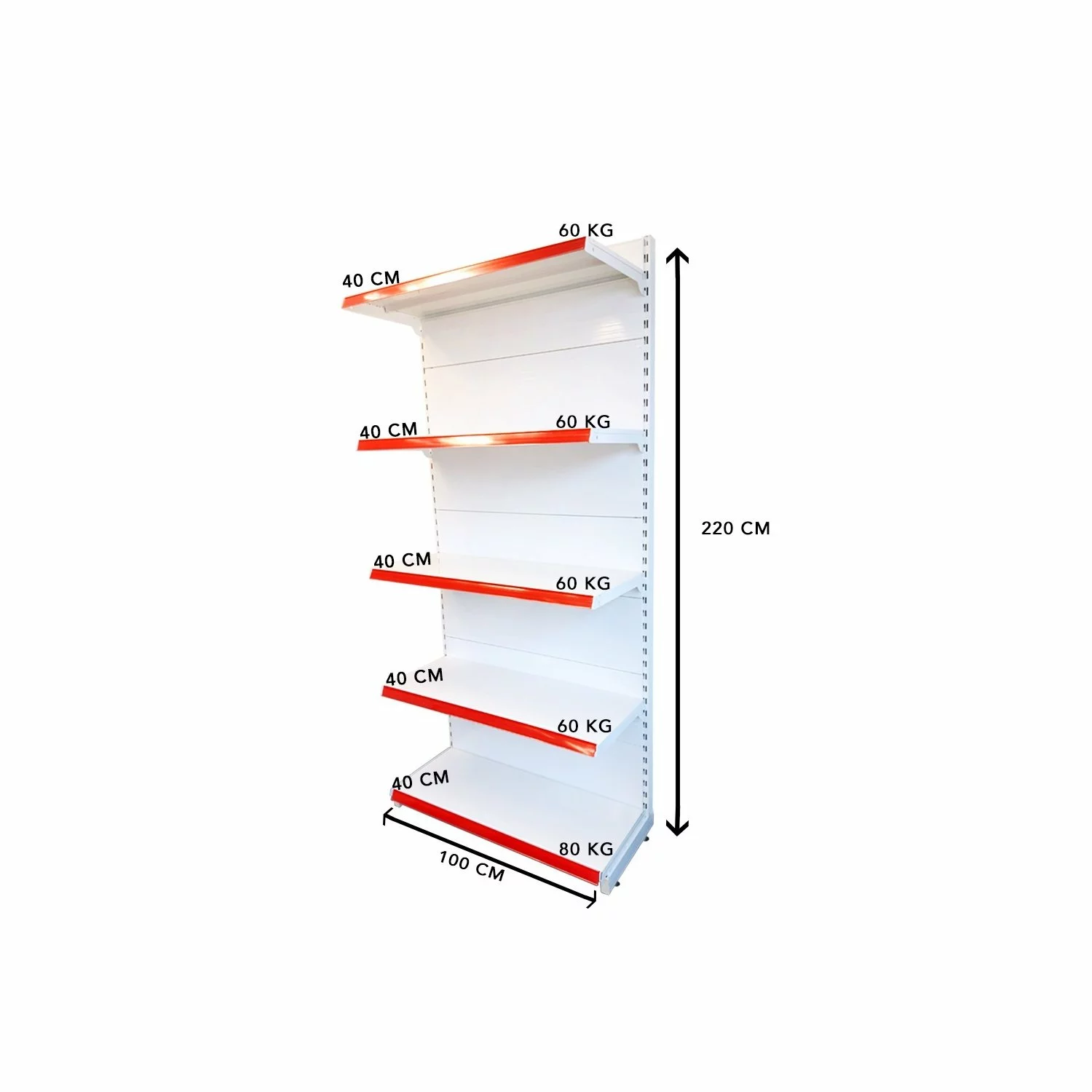 1 x montant, 7 x spate plin, 1 x 40 cm baza, 4 x 40 cm polite cu console si suport etichete (Important: Acest raft include 1 montant (2 sunt prezentate în imagine), pentru a permite conectarea mai multor unități. Pentru a finaliza tronsonul de rafturi trebuie să fie cumpărat un montant final) |