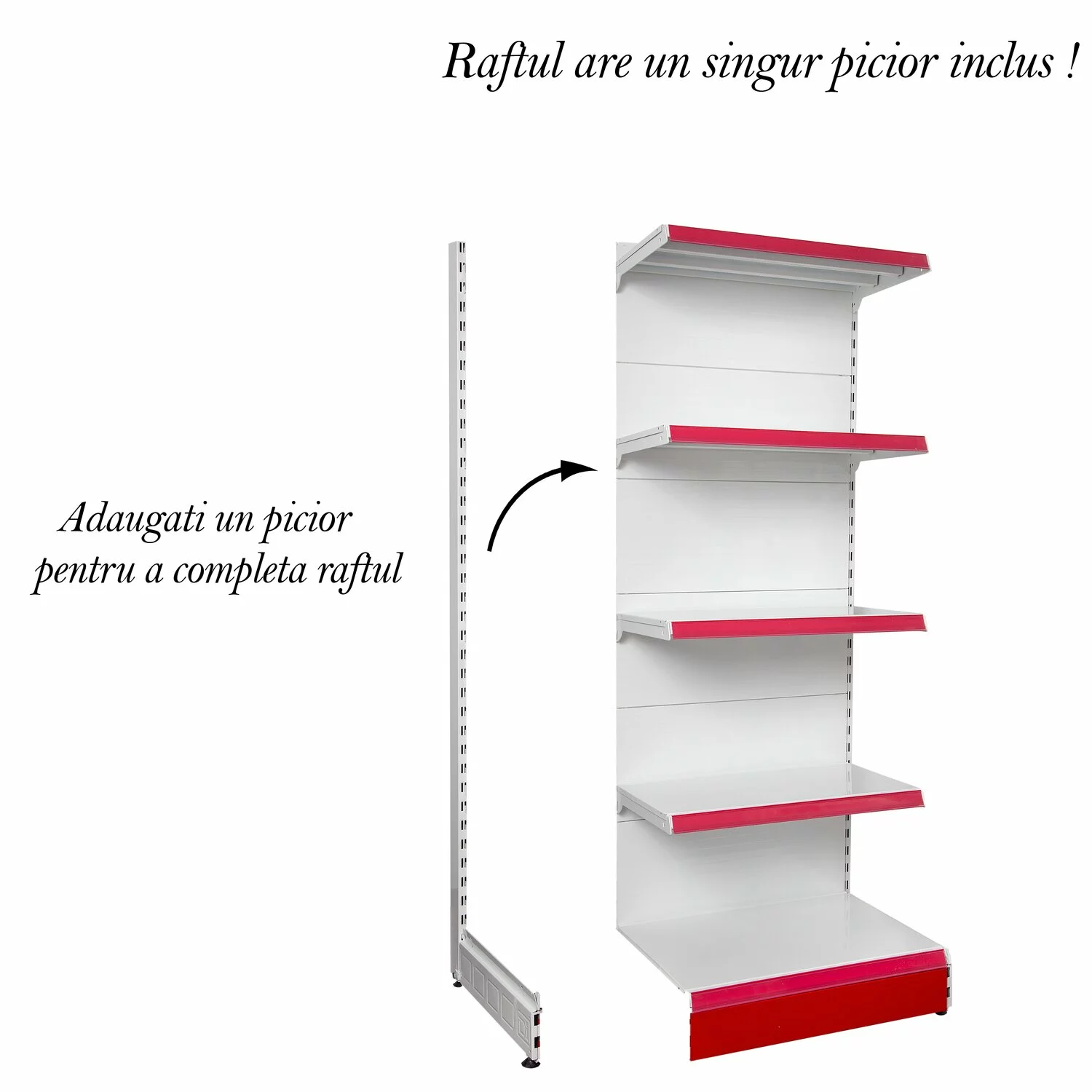 Pretul raftului se calculeaza cu un singur stalp vertical deoarece al doilea stalp vine de la urmatorul raft si se leaga intre ele. Acest lucru va scuteste de a cumpara cate doua profile pe raft. La final dupa ce aveti mai multe module adaugati un picior