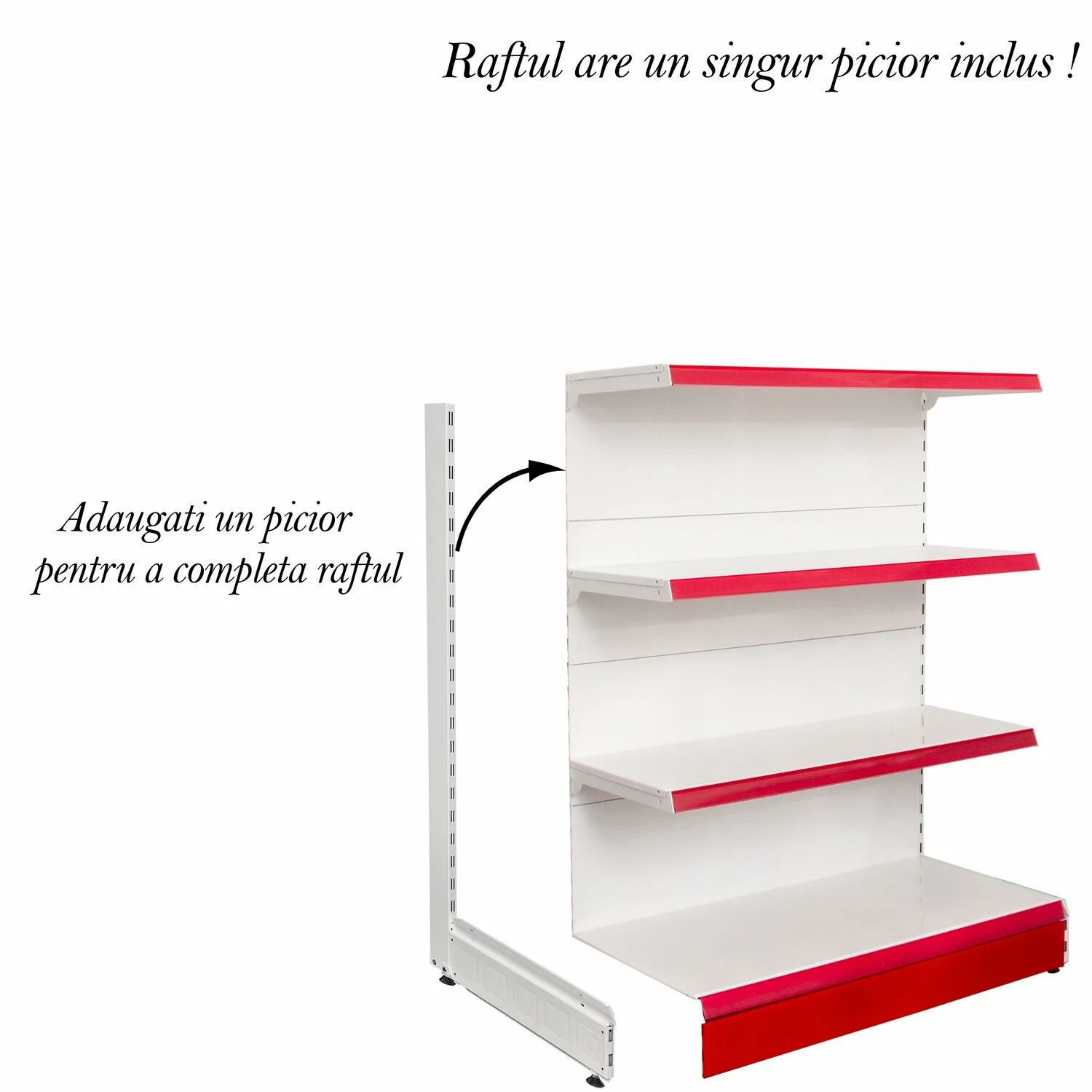 Pretul raftului se calculeaza cu un singur stalp vertical deoarece al doilea stalp vine de la urmatorul raft si se leaga intre ele. Acest lucru va scuteste de a cumpara cate doua profile pe raft. La final dupa ce aveti mai multe module adaugati un picior
