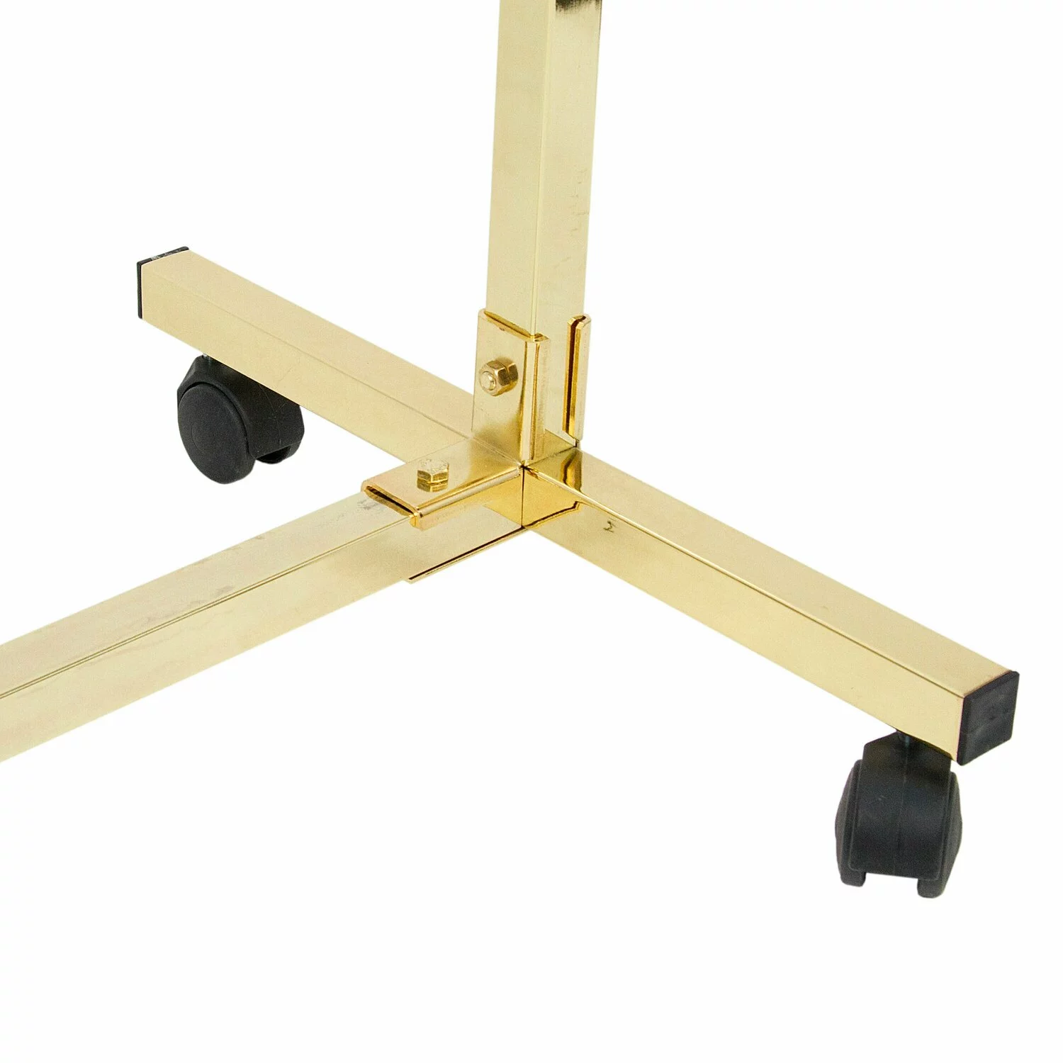 Stender din metal auriu, cu roti din plastic.
